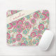 Cute colorful mouse pad with contemporary pink, aqua blue, turquoise green, taupe beige and green colored Japanese style flower pattern. With room to personalize or customize with a name, monogram or initials of your choice.