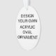 Custom printed personalized OVAL ACRYLIC CHRISTMAS TREE ORNAMENT DECORATION Blank Template - 3.32" high x 2.37" wide x 0.187" thick. Design, create, make your own. Your photo, image, text, logo, graphics in full color print on both side of the ornament, using the AcryliPrint®HD printing process. Made of ultra-durable acrylic.