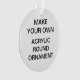 Custom printed personalized ROUND ACRYLIC CHRISTMAS TREE ORNAMENT DECORATION Blank Template - 2.87" diameter x 0.187" thick. Design, create, make your own. Your photo, image, text, logo, graphics in full color print on both side of the ornament, using the AcryliPrint®HD printing process. Made of ultra-durable acrylic.