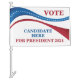 Customize your own political campaign car flag by adding your own name or another politician under this artistic American Flag in red, white, and blue. Add a custom name for president in 2024.