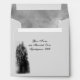 Custom envelopes with grungy script letters and haunted trees on the back and lined inside with art of a spooky Halloween sky with misty trees along a dark haunted road, gothic ravens and a cloudy full moon in black and white. Customize It to change fonts, colors, envelope size, even save your design for later.