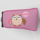 This awesome golf putter cover features a cute brown owl with big sleepy eyes. The owl is holding a pretty pale pink balloon and a bouquet of bright pink flowers wrapped in a pale pink cone.