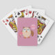 This awesome deck of playing cards features a cute brown owl with big sleepy eyes. The owl is holding a pretty pale pink balloon and a bouquet of bright pink flowers wrapped in a pale pink cone.