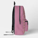 This awesome backpack features a cute brown owl with big sleepy eyes. The owl is holding a pretty pale pink balloon and a bouquet of bright pink flowers wrapped in a pale pink cone.