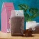 This awesome Birthday roasted coffee box favor features a cute brown owl with big sleepy eyes. The owl is holding a pretty pale pink balloon and a bouquet of bright pink flowers wrapped in a pale pink cone.