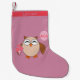 This awesome Christmas stocking features a cute brown owl with big sleepy eyes. The owl is holding a pretty pale pink balloon and a bouquet of bright pink flowers wrapped in a pale pink cone.