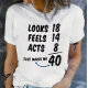 Make birthdays extra fun with this fully customizable “age equation” t-shirt! Personalize each line—Looks, Feels, Acts, and the final age—to create a one-of-a-kind design that perfectly matches your personality (or makes the perfect hilarious gift).
