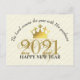 Stylish, ANY YEAR modern pale gold HAPPY NEW YEAR Postcard, showing a faux gold crown and inspirational text based on Psalm 65:11, THE LORD CROWNS THE YEAR WITH HIS GOODNESS. There is a crown motif at the top. At the bottom, the greeting HAPPY NEW YEAR is written in black typography. In the background is a subtle tiled pattern saying HAPPY NEW YEAR, and the year 2021 is in a stylish faux gold script. ALL TEXT IS CUSTOMIZABLE, so you can replace with your preferred text and change the year, as required. You can also change the wording on the reverse with your own message. This makes a stylish greeting postcard to celebrate the New Year.