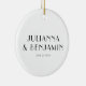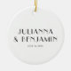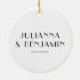 Celebrate timeless love with this custom ceramic ornament featuring a minimalist and elegant white Art Deco design, personalized with your wedding details. Perfect for newlyweds or as a thoughtful gift, this ornament brings a touch of classic sophistication to holiday decor. Its sleek and stylish design makes it a lasting keepsake to commemorate your special day in true vintage-inspired fashion.