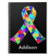 Beautiful autism ribbon filled with puzzle pieces of every color on a black background to support your loved one who falls on the autism spectrum. I love my autistic brother. Personalize this gift journal with a name.