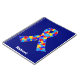 Custom Autism awareness ribbon notebook for autistic friends or family. A cool proud autism mom or dad gift that can be personalized with any text below the puzzle piece ribbon of blue, yellow, and red. A neat Asperger Syndrome pride present.