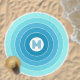 Introducing our exquisite beach towel, featuring a contemporary pattern of light baby blue, pastel aqua turquoise, and azure summer sky blue circular stripes. It offers the opportunity to customize or personalize with a monogram or initial of your choice. This ornate, funky, modern, whimsical design is perfect for the elegant fashionista, artsy fashion diva, hip trendsetter, vintage retro art style enthusiast, or geometric abstract motif lover.