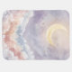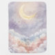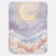 Wrap your baby in comfort and calm with this personalized baby blanket featuring a soft crescent moon floating through pastel clouds in hues of purple, pink, and blue. Delicate watercolor stars shimmer above, creating a tranquil scene for nap time or bedtime.