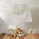 Wrap your baby in softness with this watercolor baby blanket showcasing a sleeping golden moon nestled in pale mint clouds, with twinkling stars and a soft pastel rainbow. Warm tones of sage, creamy yellow, peach, and ivory create a soothing, peaceful design perfect for newborns.