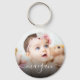 Create your own personalized round keychain with your custom modern handwritten script name and favorite baby photo.