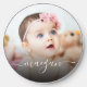 Create your own personalized round wireless charger with your custom modern handwritten script name and favorite baby photo.