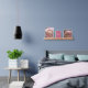 Create your own nursery photo gallery with this modern photo picture ledge. Personalized with your two favorite newborn photos and a plaque for custom name in retro inspired script and custom text for a love message or date of birth. Background color can be changed from pink to any other color in the design tool!