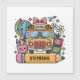 Hop on the creativity bus with this fun cartoon-style school bus greeting card featuring cheerful school supplies, colorful alphabet letters, and cute flowers! Perfect for teachers, students, and school staff, this playful back-to-school illustration is ideal for customizing with your name.