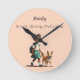 Brighten up your room or classroom with this custom wall clock, featuring a charming design of a girl walking to school with her dog. Both decorative and functional, it’s a fun way to keep track of time.