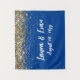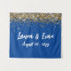 custom backdrop for photo booth, twinkle glitter backdrop for anniversary, wedding photo booth backdrop sparkly, anniversary backdrop cobalt white gold, sparkle backdrop for wedding reception, personalized wedding photo booth prop, blue wedding backdrop for ceremony, elegant reception party photobooth glam, head couple table stylish prop, photobooth rustic decor tapestries names