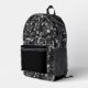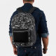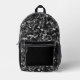 This custom backpack is shown in a charcoal multi color camo print with two tone black color accent, buy as shown or add to it.