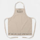 This modern almond/tan and black apron has the words "Baker Extraordinaire". It is customizable with a name and the pastry list at the bottom can be customized (best kept at one line of words). A nice gift for yourself or the baker in your life.