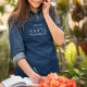 This modern Navy and white apron has the words "Baker Extraordinaire". It is customizable with a name and the pastry list at the bottom can be customized (best kept at one line of words). A nice gift for yourself or the baker in your life.