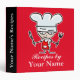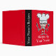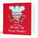 Custom funny chef cartoon recipe binder cook book. Personalized recipe binder with chef illustration wearing an apron and cooks hat. Cherry red checkered gingham pattern cookbook with personalizable name. Country chic design with fork and knife kitchen utensils. Cute baking / cooking accessories gift idea for mom, mother, aunt, grandma, sister, cousin, daughter etc. Avery 3 ring binder in 1 1.5 and 2 inch size.