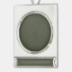 Striking a perfect balance between texture and elegance, this customizable banner ornament features a dual moss green finish: a rich, noise-textured circle paired with a matte moss green banner. Framed in sleek silver metal and suspended with a satin ribbon, this piece brings timeless style to any setting — personal or professional.