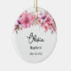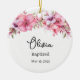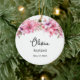 This ceramic ornament is shown with a lovely floral print and a custom name and date of their baptism.