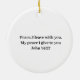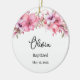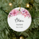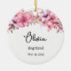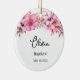 This ceramic ornament is shown with a lovely floral print and a custom name and date of their baptism.