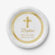 Custom Baptism in Pretty White Damask and Gold Paper Plates
