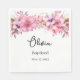 This paper napkin is shown with a lovely floral print and a custom name and date of their baptism.