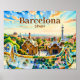 Custom Barcelona Spain Watercolor Park Guell Retro Poster