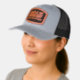 Custom Leather Patch Hat, Sytle: Adult Retro Trucker Cap, Color: Heather / Black, Shape: Circle