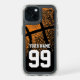 Custom basketball jersey number cool Speck iPhone 15 Case. Durable shockproof design with orange ball print.