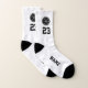 Custom basketball sport socks with jersey number and name. Personalized socks for men and women. Make a lucky pair for sporty boyfriend, girlfriend, husband, wife, son, daughter, team, league, co worker, best friend, family, trainer, coach, ball player, kids, uncle, grandpa, boss, coworker, crew etc. White sport socks with modern ball logo and athletic typography. Change into any colors. Cool Birthday and Christmas gift ideas for your favorite people. Available in large and small sizes for him or her.