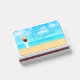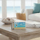 These matchboxes feature a bright and inviting coastal scene with a woman in a white dress and straw hat looking out over a sunny beach with clear blue water. Personalize the text with your details to make a perfect souvenir for your guests