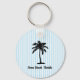 Custom Beach Palm Tree Nautical Blue Stripe Keychain