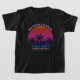Cool matching beach trip black kids t-shirts for an island cruise or coastal bachelorette party. Features beautiful palm trees in front of a pretty pink beach sunset on a cool tee. Perfect custom children's shirts for your summer trip to the coast.