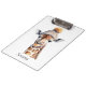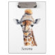 Stay organized with the Custom Beanie Bunch Giraffe Clipboard. This durable, high-gloss clipboard features a charming watercolor illustration of a majestic giraffe wearing a cozy tan knit beanie with a fluffy pom-pom. The whimsical design is printed in high definition, capturing every artistic splatter and warm earth tone. Equipped with a sturdy metal clip and a smooth writing surface, it is perfect for classrooms, offices, or on-the-go note-taking. Personalize the front or back with a name to create a thoughtful and unique gift for teachers, students, or any animal lover who values both style and utility.