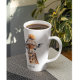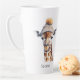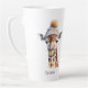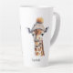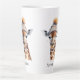 Sip in style with the Custom Beanie Bunch Giraffe Latte Mug. This tall, elegant ceramic mug features a high-definition watercolor illustration of a majestic giraffe wearing a cozy tan knit beanie. The sophisticated design, accented by whimsical paint splatters and warm earth tones, wraps beautifully around the tapered frame. With a generous capacity for your favorite lattes, mochas, or teas, and a comfortable handle for easy gripping, it’s both a functional kitchen staple and a piece of art. Personalize it with a name to create a one-of-a-kind gift for animal lovers, or add it to your own collection for a touch of safari charm every morning.