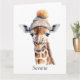 Send a smile across the miles with the Custom Beanie Bunch Giraffe Postcard. This high-quality card features a beautiful watercolor illustration of a majestic giraffe in a cozy tan knit beanie. The artistic design, complete with whimsical paint splatters and warm earth tones, is printed on premium, matte cardstock that is easy to write on. Personalize the front with a name to create a truly unique piece of stationery. Whether you're sending a thank-you note, a birthday greeting, or a "just because" message, this personalized postcard is a charming way for animal lovers to stay connected.