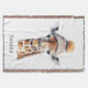 Curl up in total comfort with the Custom Beanie Bunch Giraffe Throw Blanket. This luxuriously soft blanket showcases a beautiful watercolor illustration of a majestic giraffe wearing a cozy tan knit beanie with a fluffy pom-pom. The design features elegant earth tones and artistic paint splatters, making it as much a piece of art as it is a functional home accessory. Personalize the blanket with a name to create a sentimental keepsake for baby showers, birthdays, or a sophisticated nursery. Whether draped over a nursery chair or used for movie nights, this custom throw adds warmth and personality to any space.