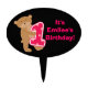 A cute brown bear holds the number 1 on a cake topper perfect for your child's first birthday celebration! You can easily add a name or other text to this cute Bear 1st Birthday cake topper before ordering.