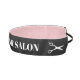 Custom beauty salon name headband for hair stylist. Black and pink design with hairdresser scissor logo. Add your own personalized name.