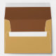 Use this custom beige and brown wedding invitation envelope in place of the generic white envelopes that come standard with all of the cards and invitations in the Floral Vines Wedding Collection. This golden beige or camel colored envelope features a brown interior and a pre-printed return address on the back flap that can be customized on the product order page. The default size is 7 1/4" W x 5 1/8 H (A7) and fits the 5x7 greeting cards and invitations. You can choose a different size by selecting "customize it" and "Choose your paper type and color". A7 fits 5x7 invitations and cards. A6 is for the small invitation, but will also fit the small greeting card (note card). A2 is for the small greeting card (note card), but will also fit the small invitation. We also offer this envelope design without the printed address if you would rather write your own or use address labels.