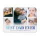 Personalized fathers day fridge magnet featuring 5 adorable photos of him and the kids, the words "BEST DAD EVER" in a modern blue gradient font, and the kids names.