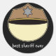 Best Sheriff Ever cartoon sheriff head with brown sheriff hat with silver sheriff star and text you can edit! Best Sheriff Ever default text, change the font size, color and style!