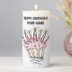 Custom Birthday candle with cute cupcake design. Add your own personalized name. Big celebration candles with your text. Fun for men, women and kids. Funny drawing of cup cake with candles.